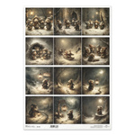 Zestaw papierów ryżowych - myszy, styl vintage, zima - RSM211 - Itd Collection