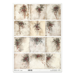 Papier ryżowy do decoupage A3 - bukiety jemioła ostrokrzew - R1503L - Itd Collection