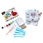 Zestaw kreatywny z gliną samoutwardzalną - potworki - farbki, narzędzia, pędzelki