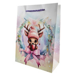 Torebki papierowe 3szt. ok.15,9x23,5cm - różowe ze szlaczkiem - Whisker Graphic