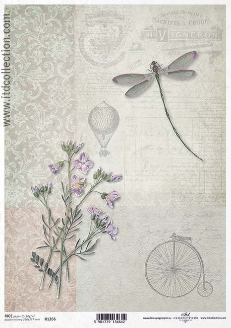 Papier ryżowy do decoupage ITD-R1266 / bicykl, ważka, balon