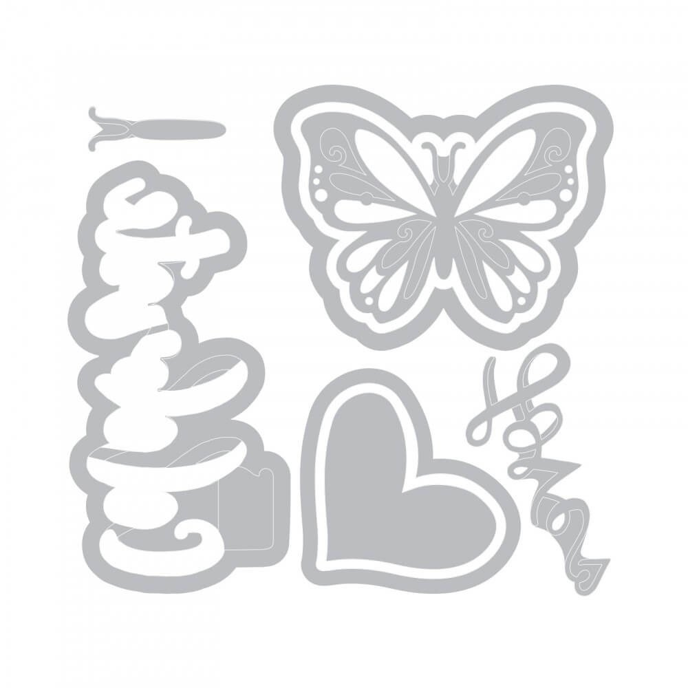 Zestaw wysokiej jakości wykrojników wykonanych ze stali węglowej marki Sizzix. Wykrojniki pozwalają wycinać ozdobne kształty w przeznaczonych do tego specjalnych maszynkach.