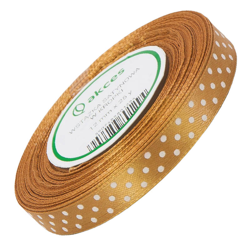 Wstążka satynowa w kropki 12mm ok. 23m - 21 złota