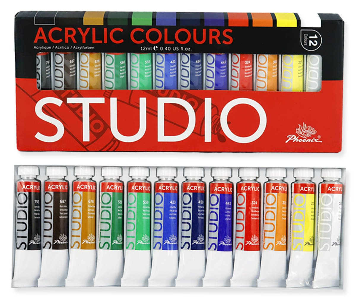 Farby akrylowe firmy Phoenix - zestaw 12 sztuk.