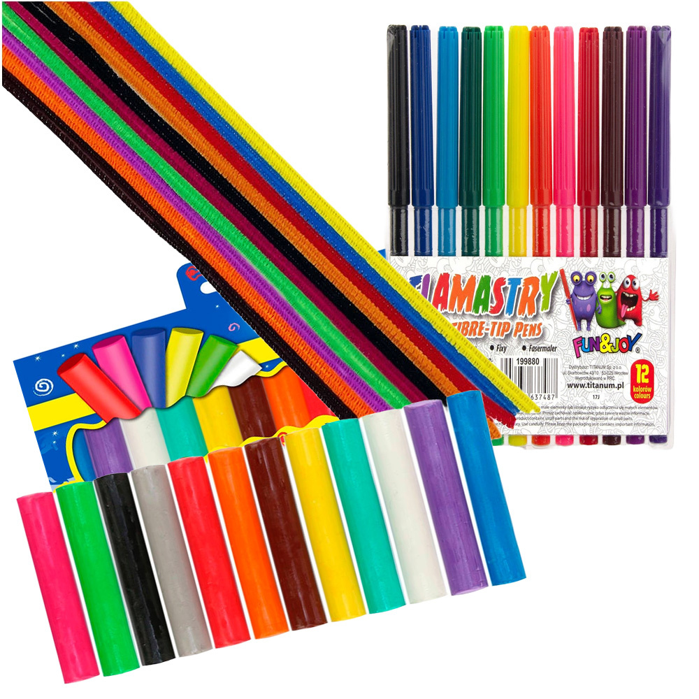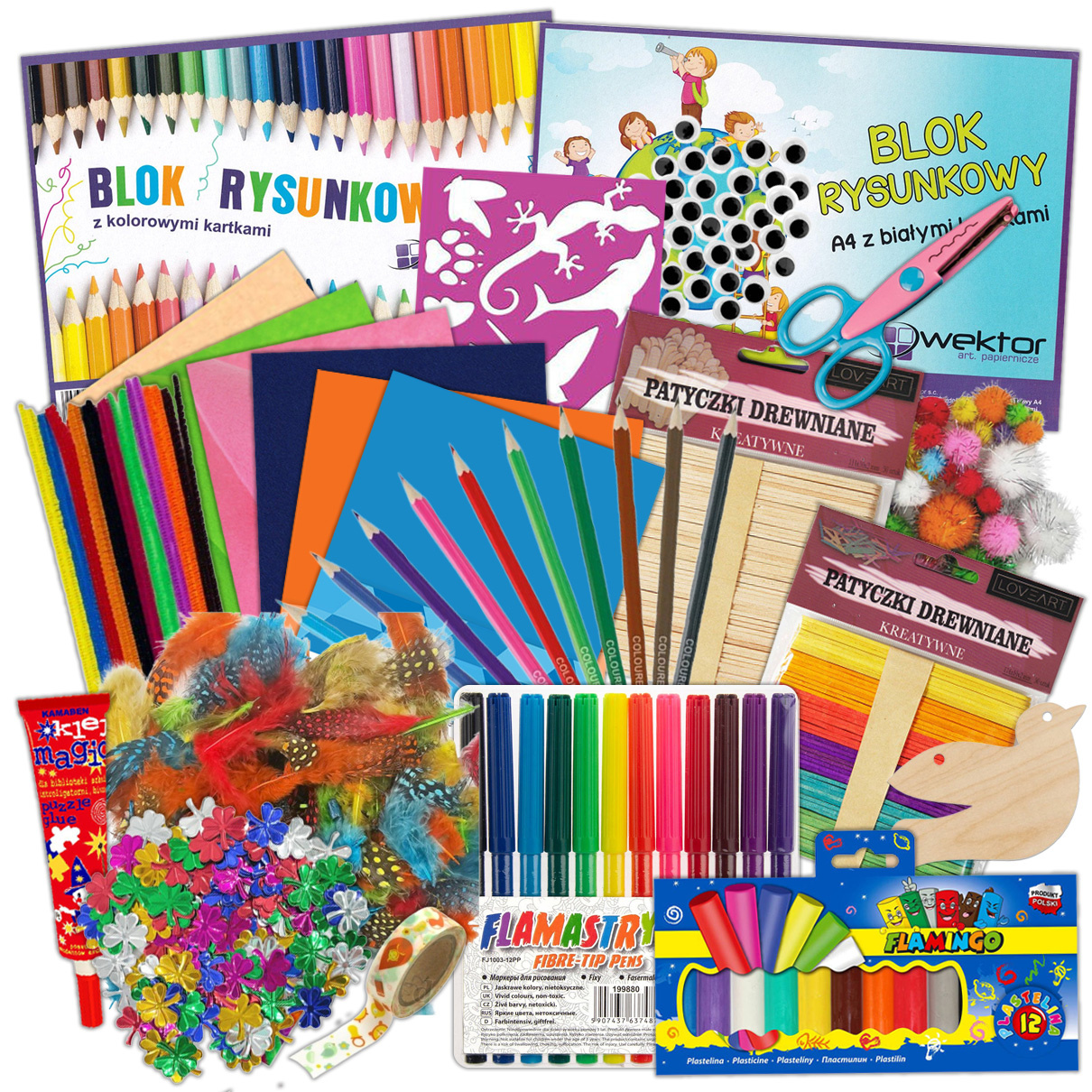 Zestaw artykułów kreatywnych dla dzieci. Idealny do prac i zabaw z dziećmi.
