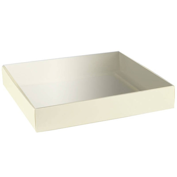 Pudełko z pełną szybką kwadratowe kremowe małe 8x8 - Rzeczy z papieru