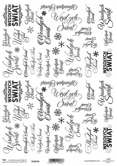Papier do scrapbookingu A4 - napisy świąteczne