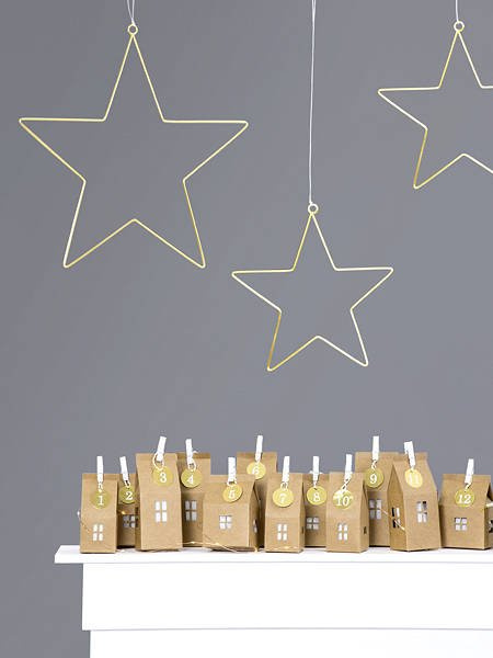 Elegancki kalendarz adwentowy w formie 24 papierowych domków kraft. Idealny do samodzielnego wypełnienia drobnymi upominkami lub słodyczami. Świetna dekoracja bożonarodzeniowa dla dzieci i dorosłych.