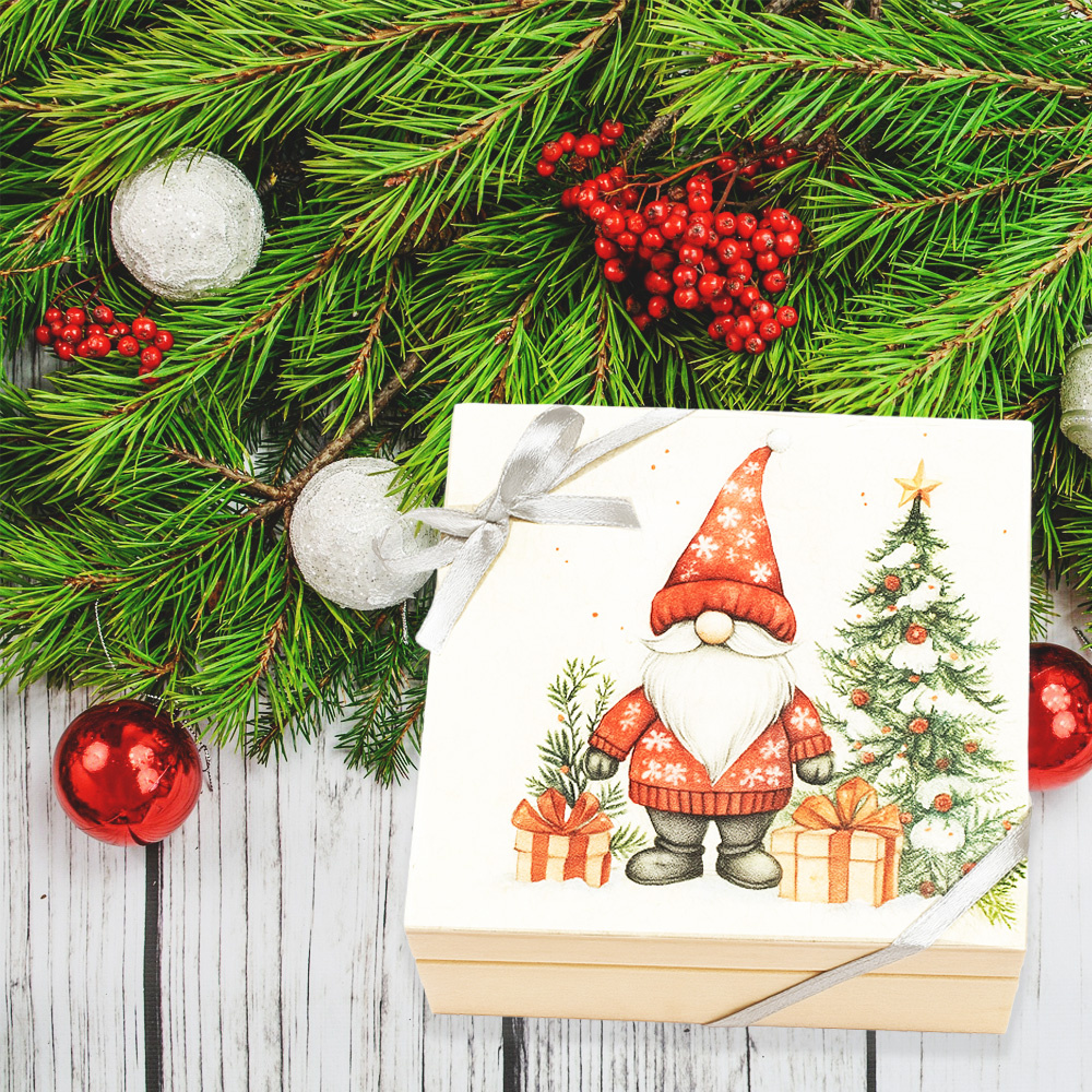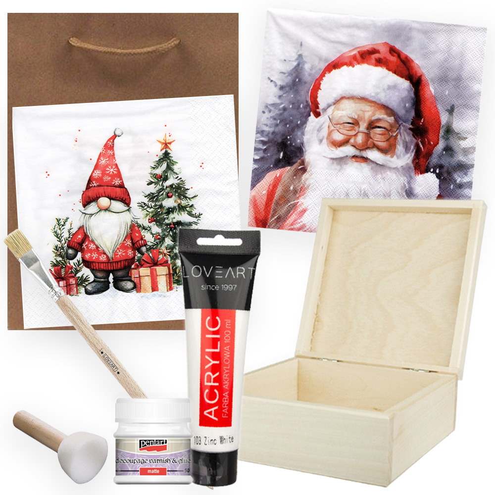 W zestawie masz wszystko, czego potrzebujesz, żeby ozdobić drewniane pudełko dla siebie lub bliskiej Ci osoby.