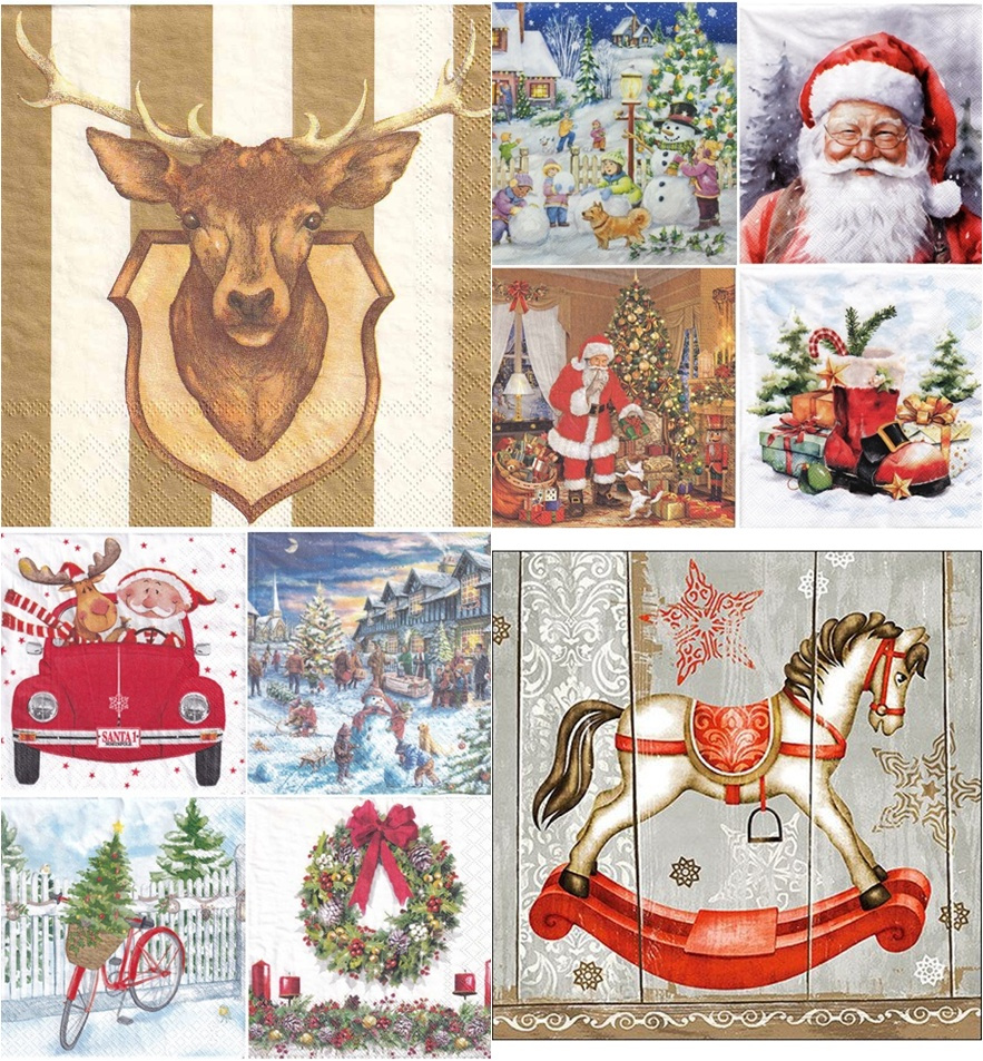 Zestaw świątecznych serwetek do decoupage 33x33cm - 10szt