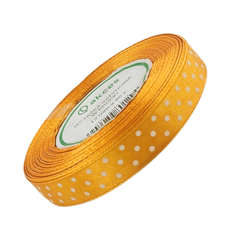 Wstążka satynowa w kropki 12mm ok. 23m - 80 jasno złota