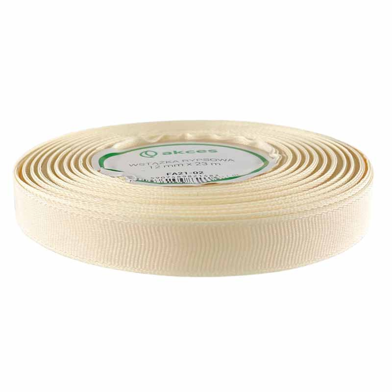 Tasiemka / wstążka rypsowa 12mm kremowa 23m