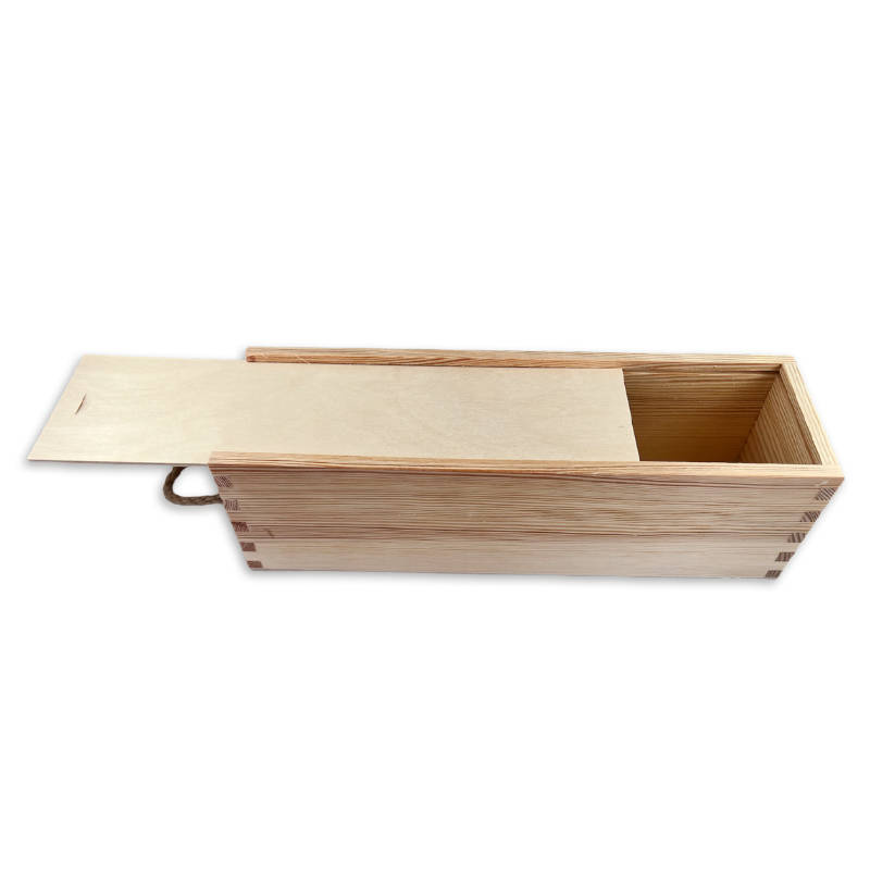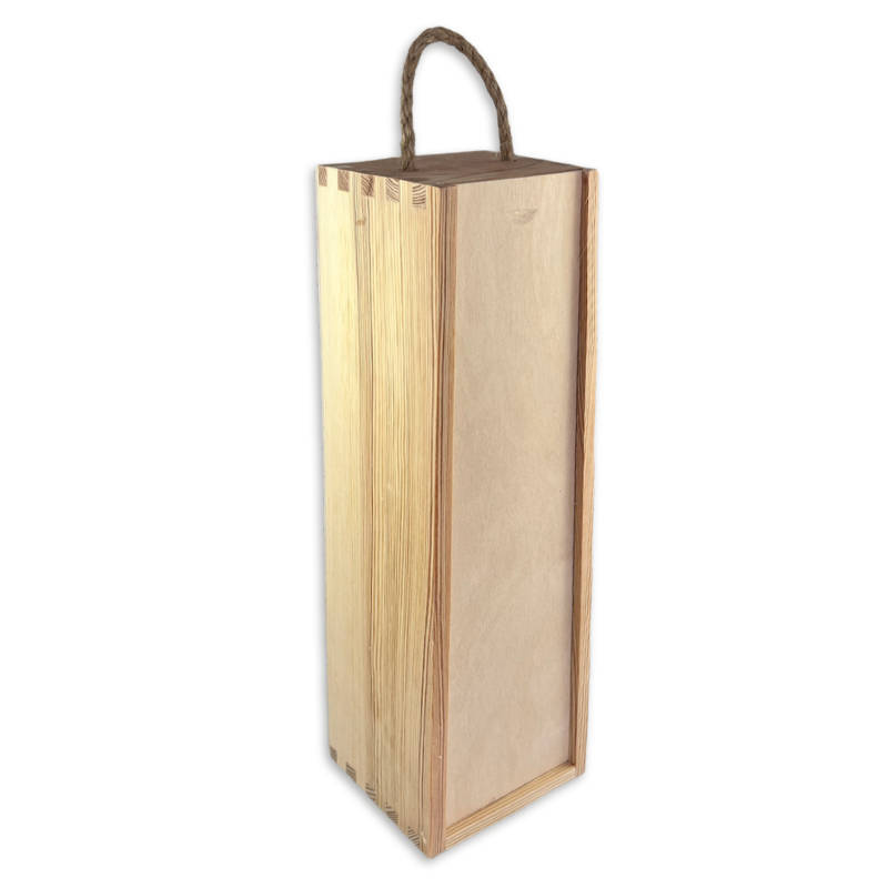 Stylowa drewniana skrzynka na wino z zasuwką wykonana z naturalnego drewna sosnowego i sklejki to idealna baza dla miłośników rękodzieła i prezentów z duszą. Dzięki swojej prostej, klasycznej formie świetnie sprawdzi się jako opakowanie prezentowe na wino, które możesz ozdobić zgodnie ze swoim stylem.
