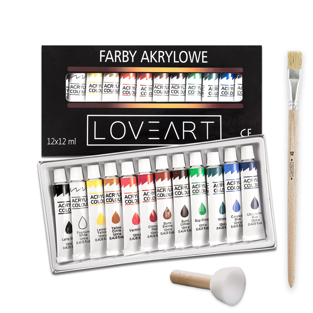 - Farby akrylowe Loveart 12 × 12 ml – zestaw kolorów do różnorodnych efektów dekoracyjnych