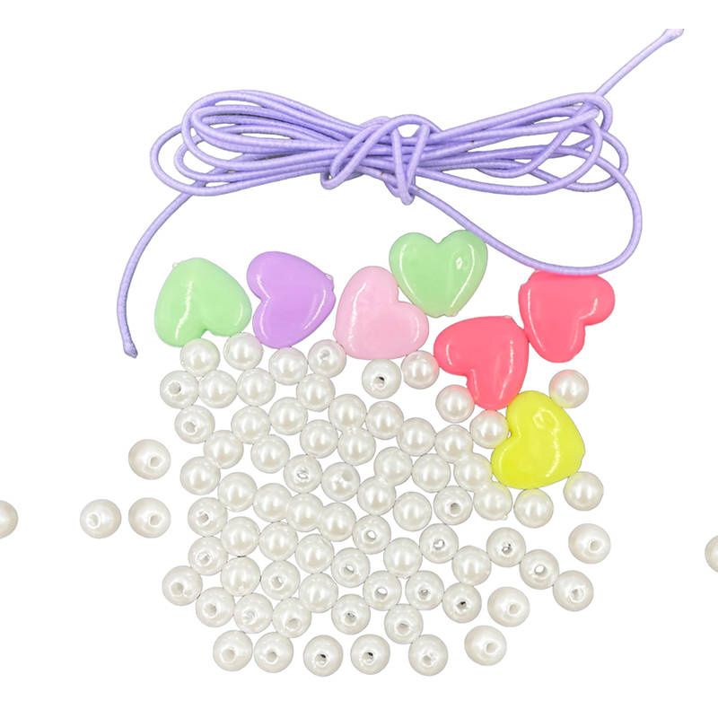 Pastelowe perełki i serduszka (87 szt.) z gumką - zestaw kreatywny LoveArt