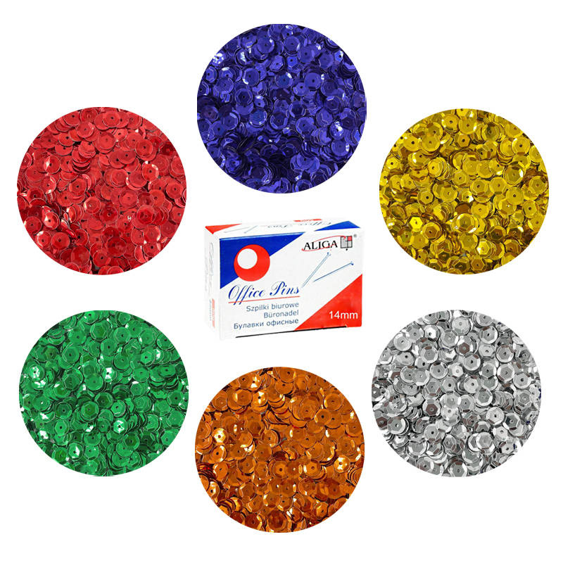 - 6 opakowań cekinów metalicznych o średnicy 9 mm (każde po 15 g)