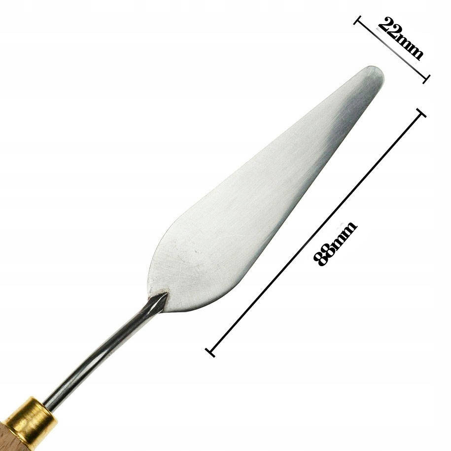 Posiada profilowaną drewnianą rączkę o długości 10cm oraz metalową, sprężystą końcówkę o wymiarach 88 x 22mm.