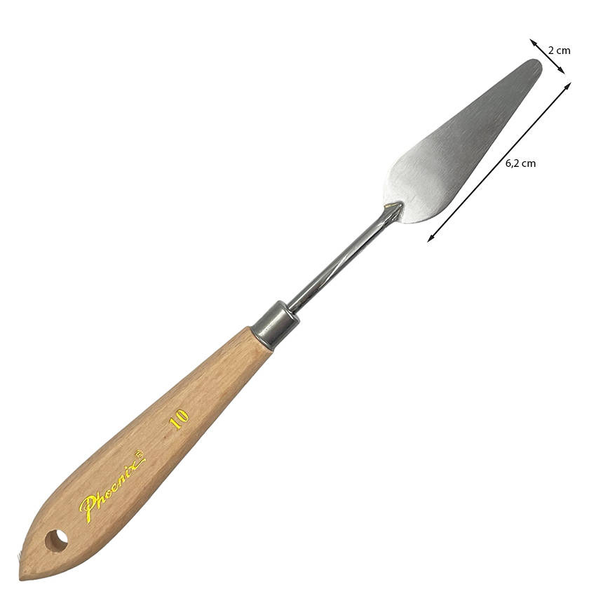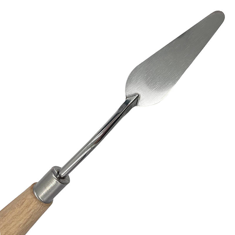Posiada profilowaną drewnianą rączkę o długości 10cm oraz metalową, sprężystą końcówkę o wymiarach 62 x 20 mm.