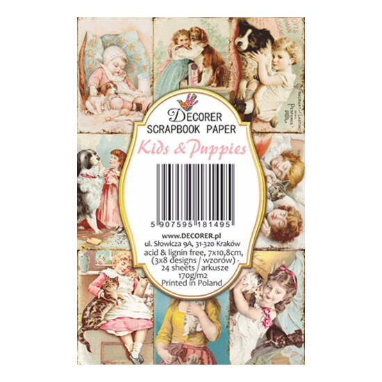Zestaw papierów do scrapbookingu 11x7 cm - Decorer - Kids & Puppies dzieci ze zwierzątkami
