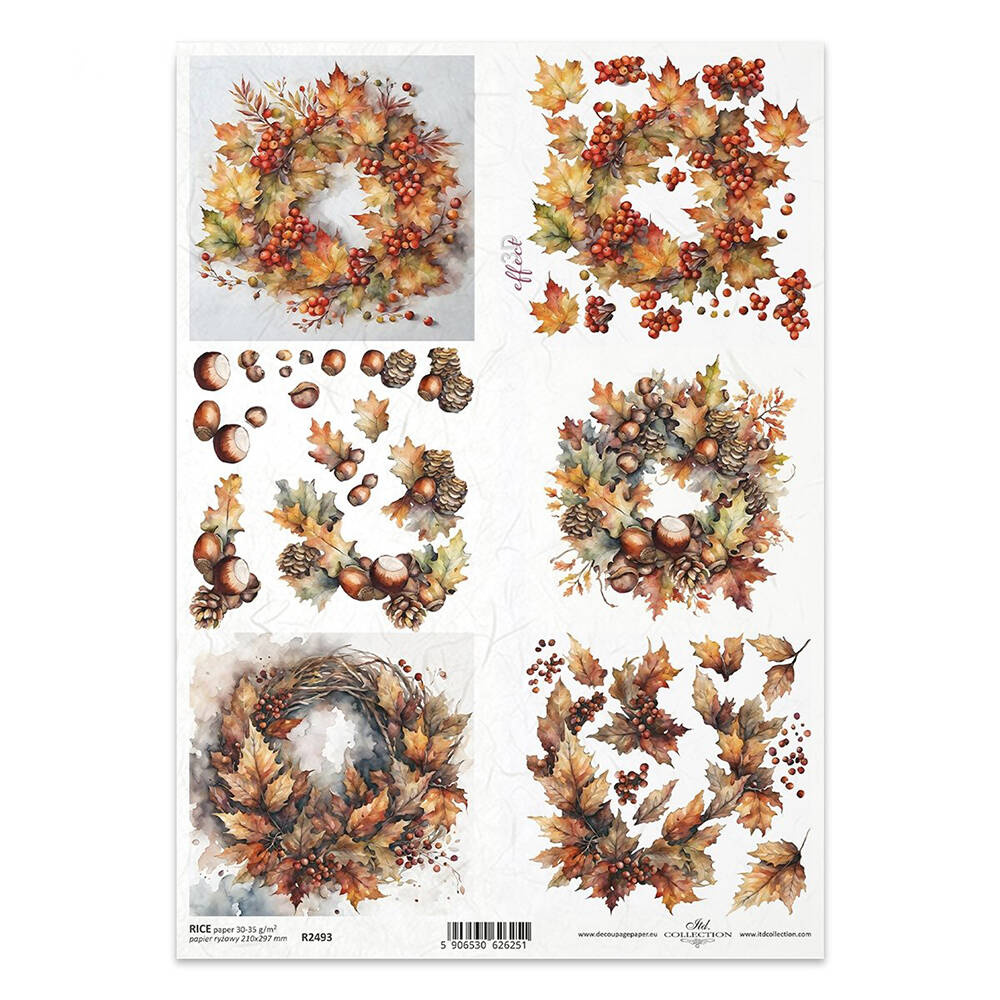 Papier ryżowy do decoupage A4 - jesienne wianki 3D - R2493 - Itd Collection