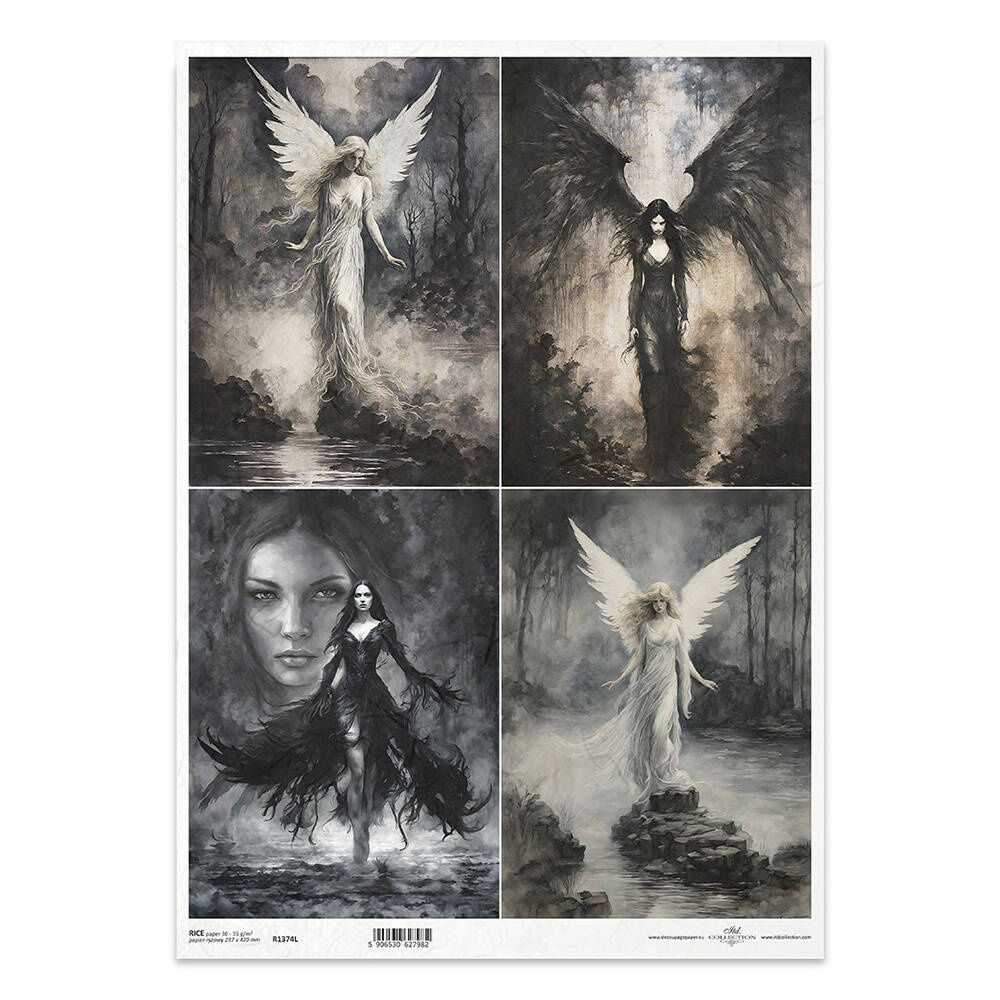 Papier ryżowy do decoupage A3 - anioły, anielica dobro i zło - R1374L - Itd Collection