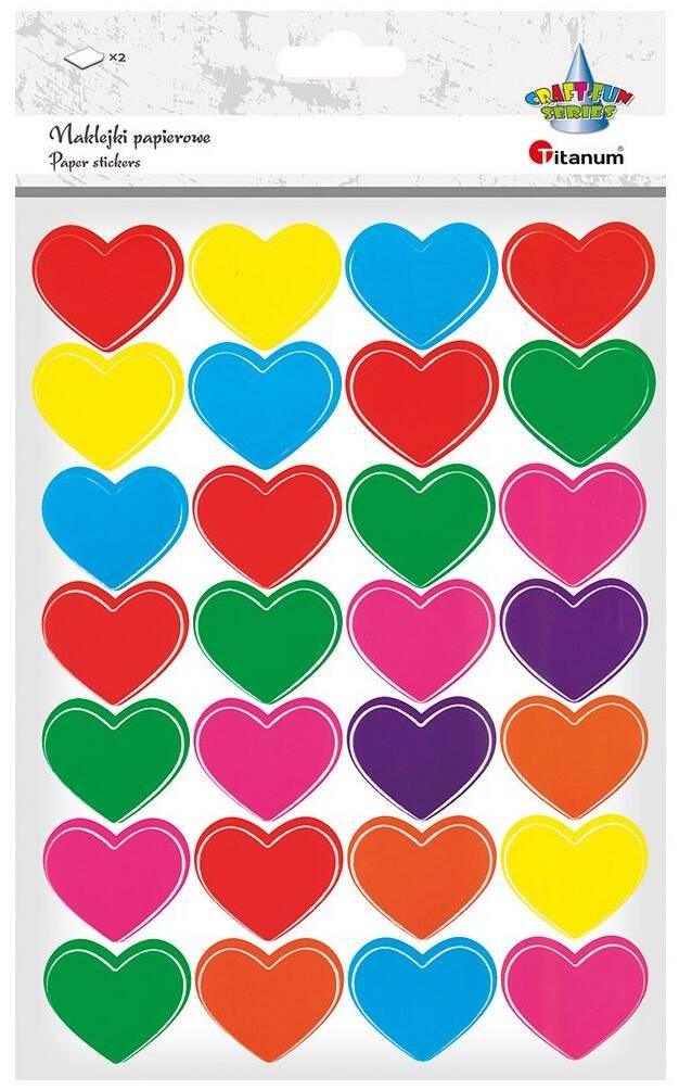 Samoprzylepne naklejki papierowe o wzorze różnokolorowych serc umieszczone na blistrze zawierającym 56szt. nadadzą wielu projektom perfekcyjne wykończenie.