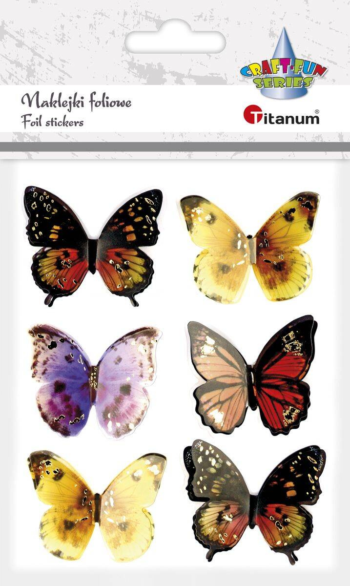 Naklejki foliowe 3D na piance o wzorze motyli umieszczone na blistrze zawierającym 6 sztuk nadadzą wielu projektom perfekcyjne wykończenie.