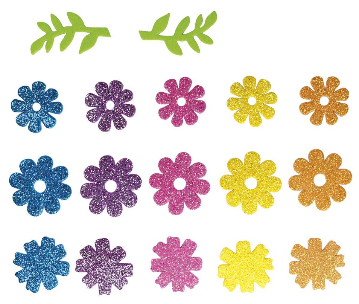 Naklejki piankowe o wzorze kwiatów i liści umieszczone w opakowaniu zawierającym 57 sztuk nadadzą wielu projektom perfekcyjne wykończenie.