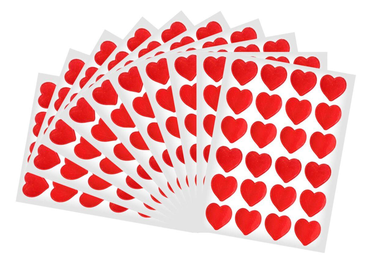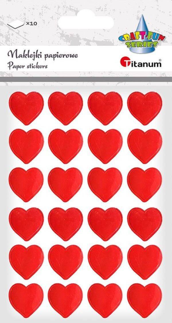 Naklejki dekoracyjne papierowe o wzorze serc zamieszczone na 10 arkuszach, każdy po 24 sztuki nadadzą wielu projektom perfekcyjne wykończenie.