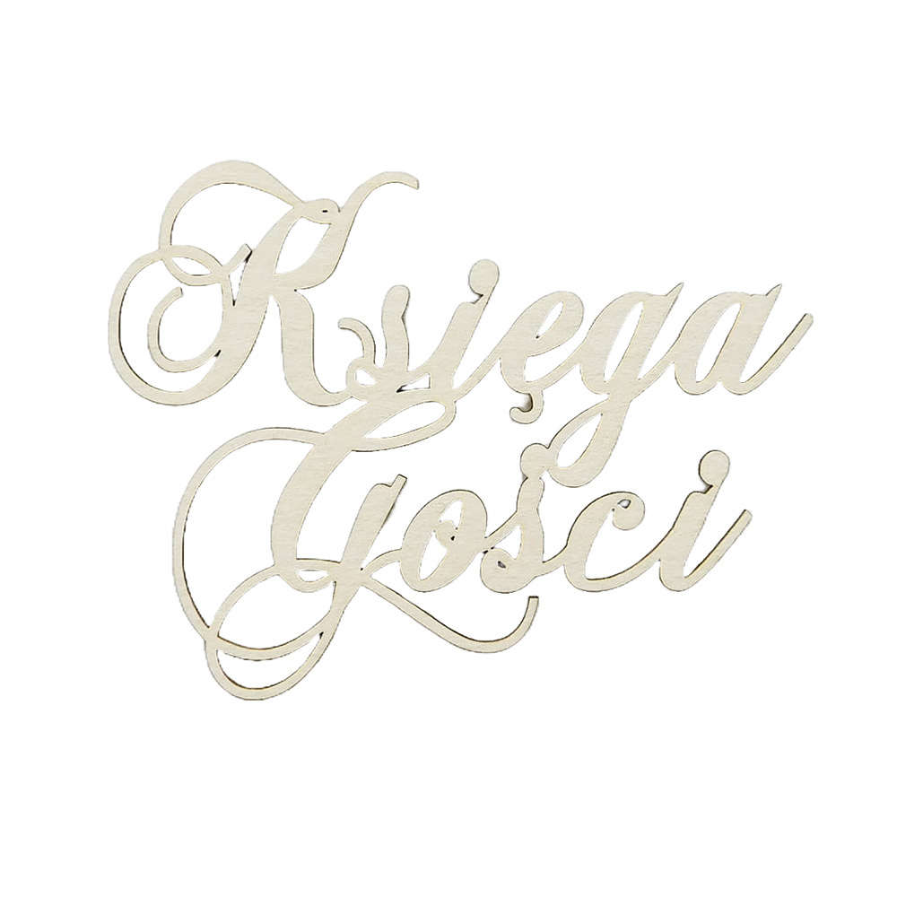 Elegancki element dekoracyjny w formie napisu Księga Gości, wykonany z jasnej tektury o grubości 1,2 mm.
