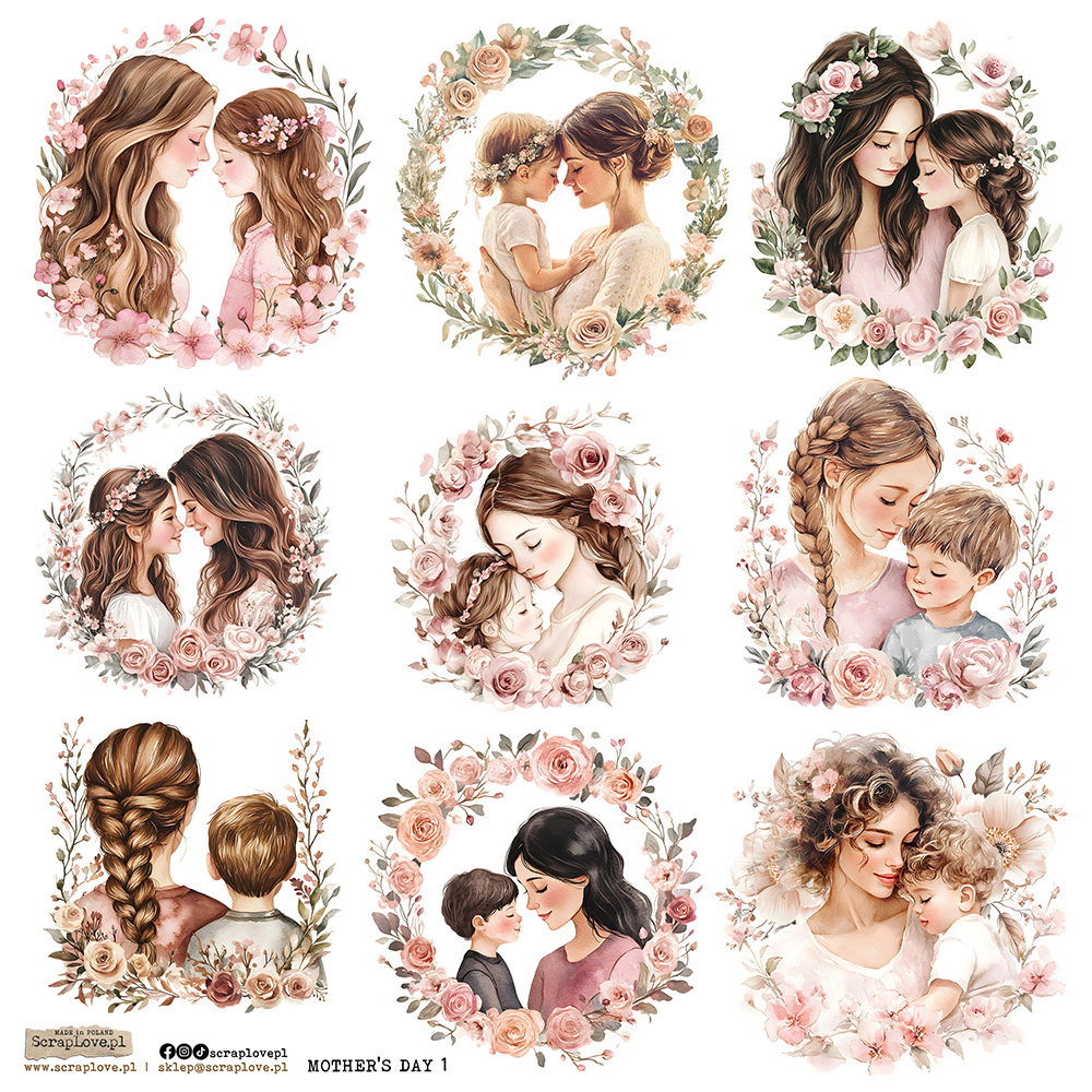 Naklejki papierowe - ScrapLove - Mother's Day 1 Dzień Matki matka i córka