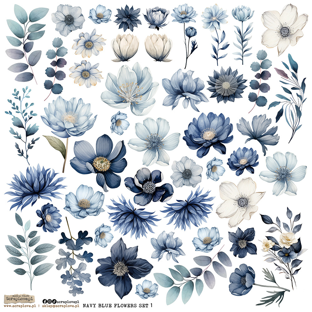 Naklejki papierowe - ScrapLove - Navy Blue Flowers set 1 niebieskie kwiaty