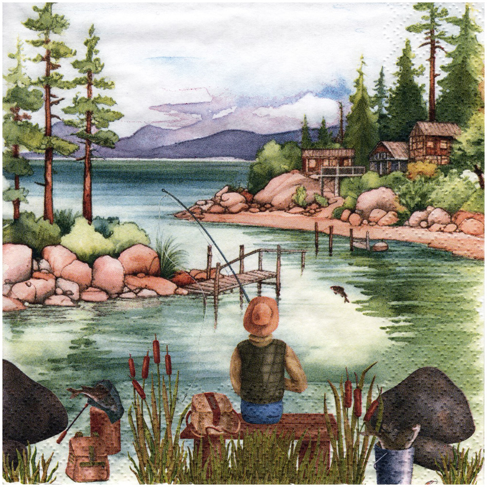 Serwetka do decoupage 33x33cm - Lakeside Fishing jezioro wędkarz