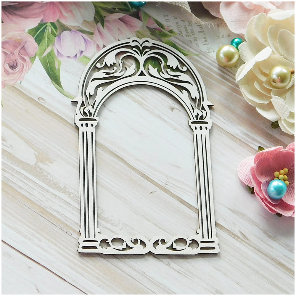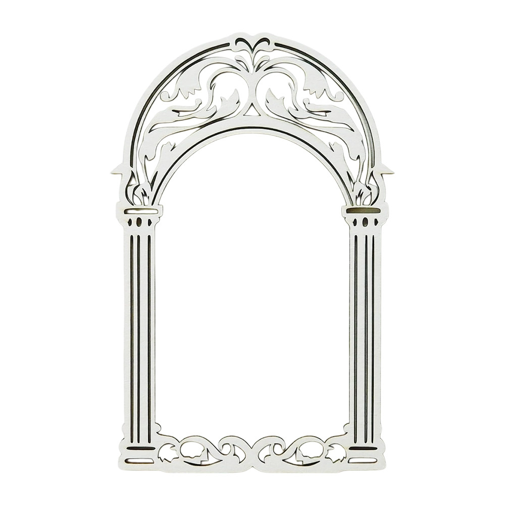 Elegancki element dekoracyjny w formie ozdobnej ramki, wykonany z jasnej tektury o grubości 1,2 mm.