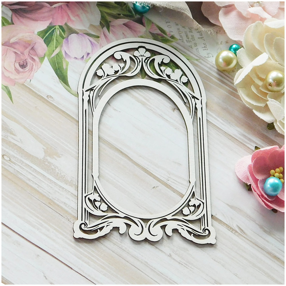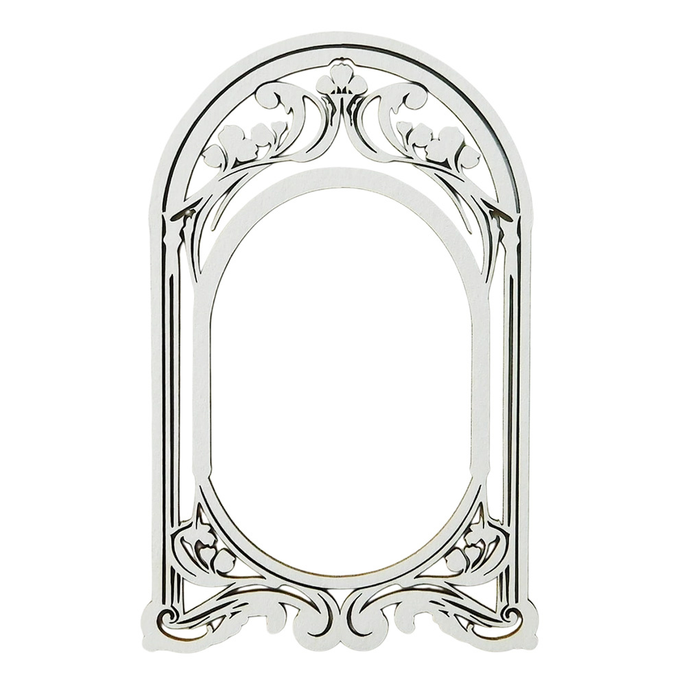 Elegancki element dekoracyjny w formie ozdobnej ramki, wykonany z jasnej tektury o grubości 1,2 mm.