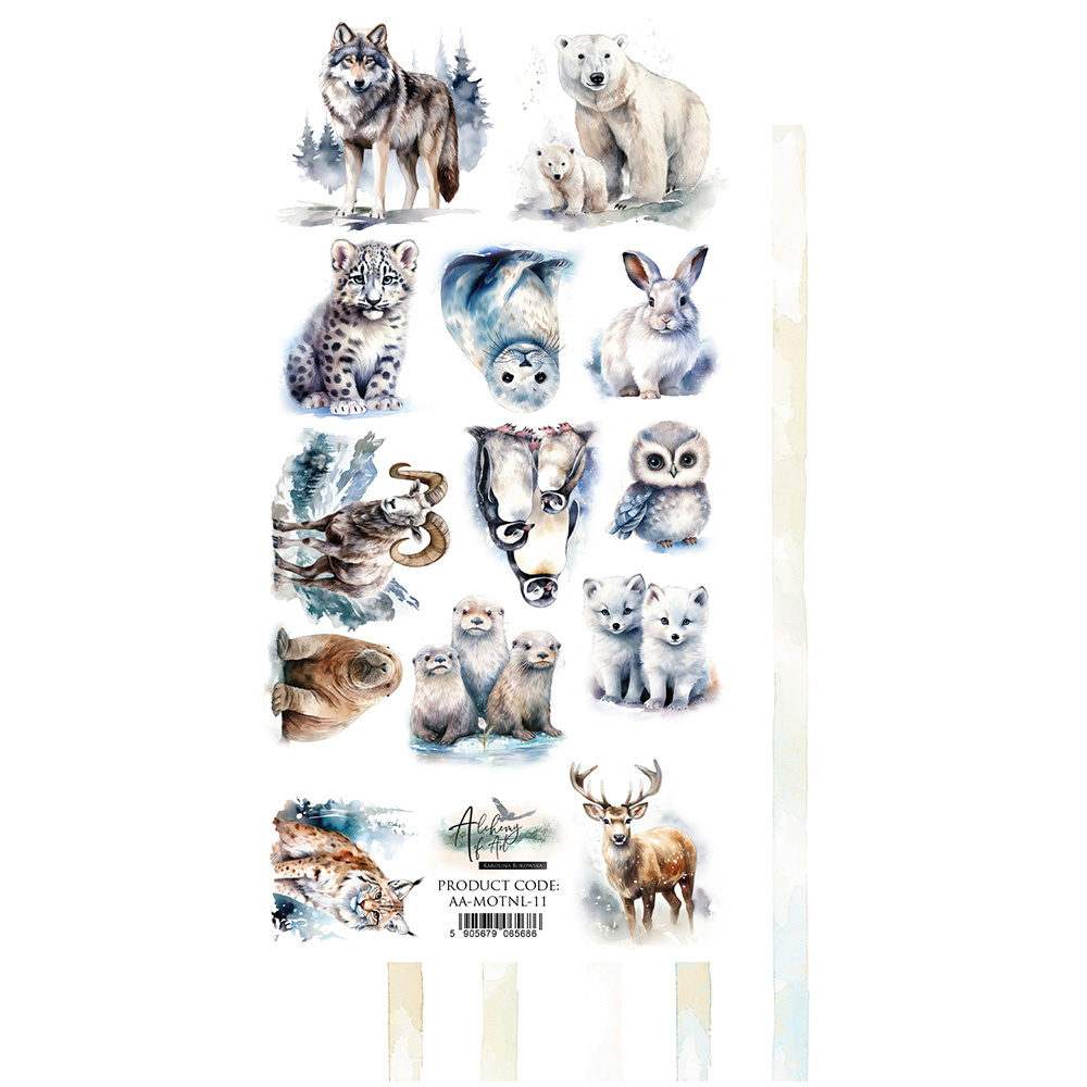 Papier do scrapbookingu 15x30 - Alchemy of Art - Magic of the Northern Lights, polarne zwierzęta