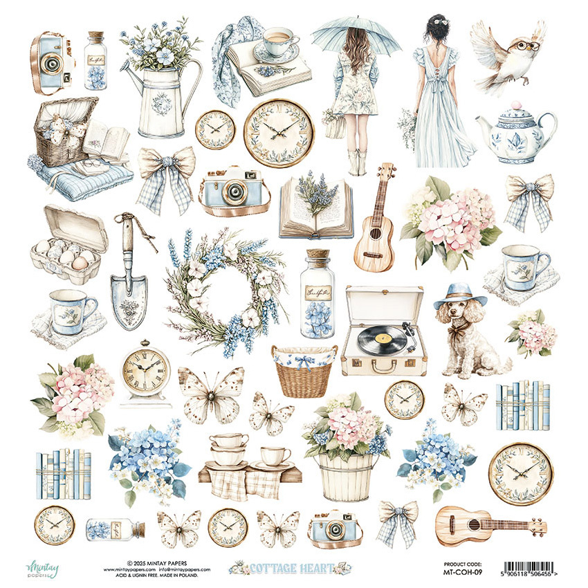 Papier z elementami do scrapbookingu 30x30 - Mintay - Cottage Heart