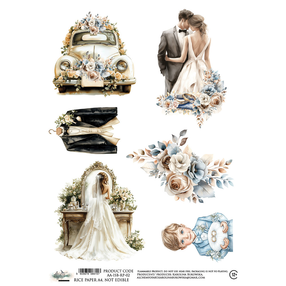Papier ryżowy do decoupage A4 - Art of Alchemy - In shades of blue - ślub