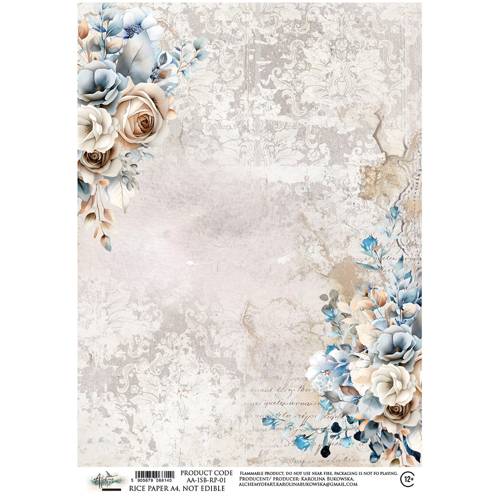 Papier ryżowy do decoupage A4 - Art of Alchemy - In shades of blue - kwiaty ślubne