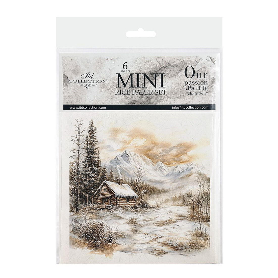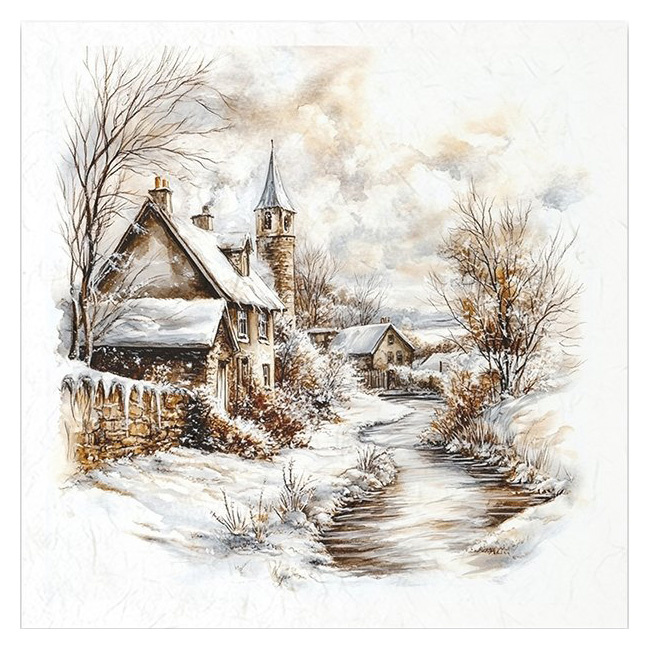 Zestaw papierów ryżowych - pejzaż zimowy, domki, drzewa iglaste - RSM205 - Itd Collection