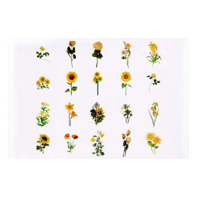 Naklejki foliowe z motywem kwiatów: słonecznik, róża, bratki.