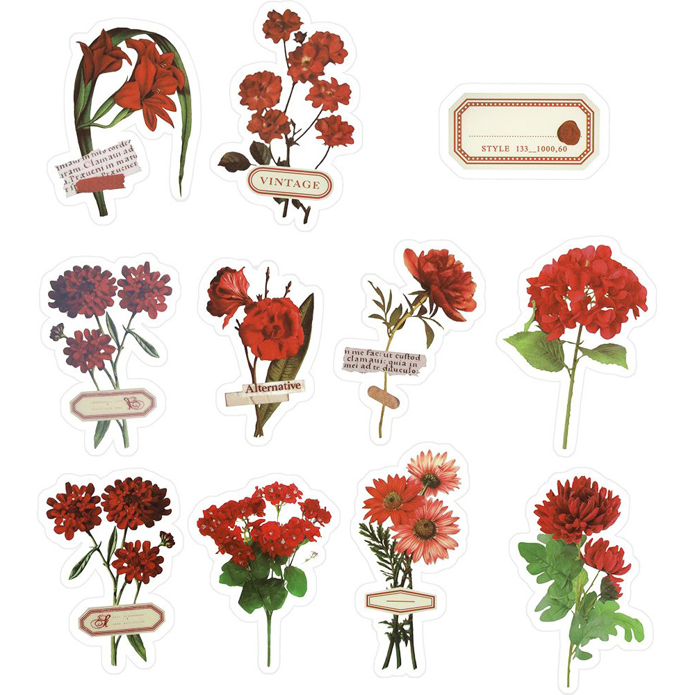 Naklejki foliowe - Czerwone kwiaty i etykietki