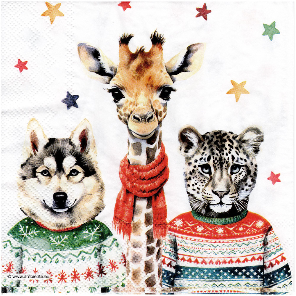 Serwetka do decoupage 33x33cm - Martin and friends zwierzęta w sweterkach