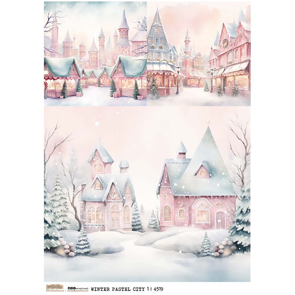 Papier ryżowy A4 - Scraplove - Winter Pastel City 1 - Zimowe pastelowe miasto 1