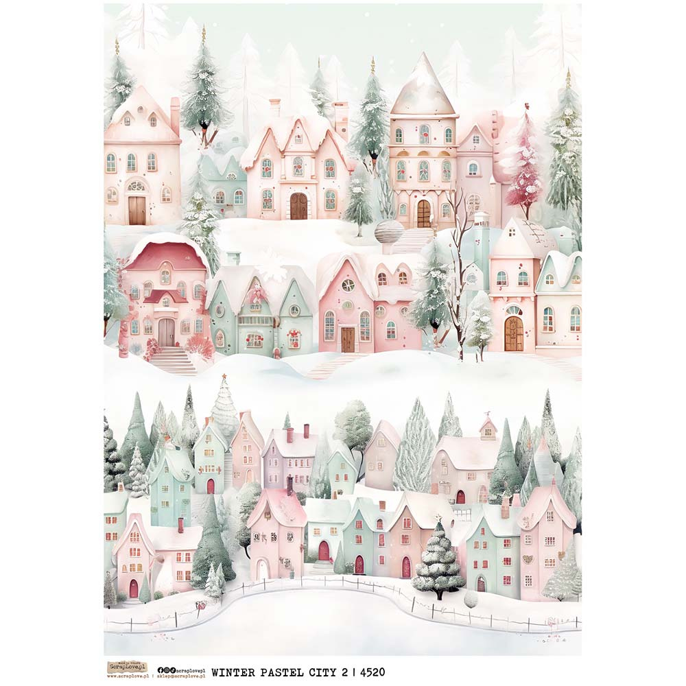 Papier ryżowy A4 - Scraplove - Winter Pastel City 2 - Zimowe pastelowe miasto 2