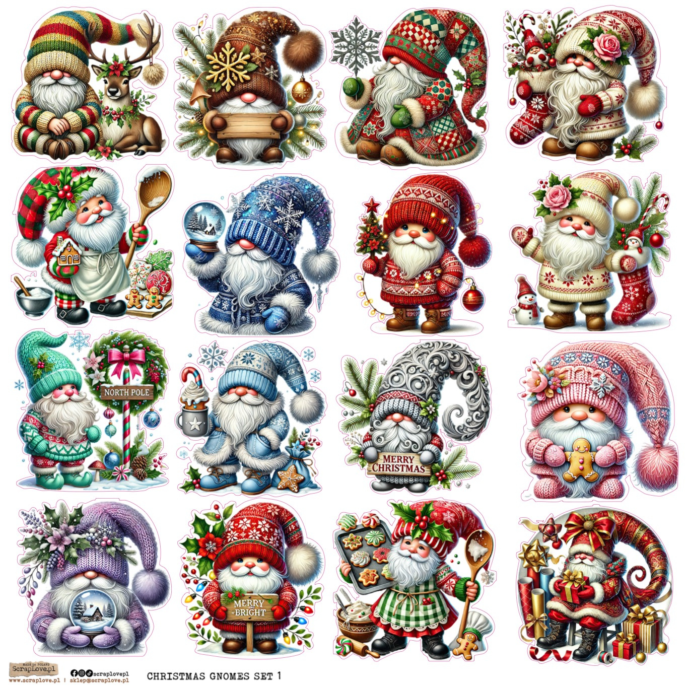 Naklejki papierowe - ScrapLove - Christmas Gnomes Set 1 - Świąteczne skrzaty 1
