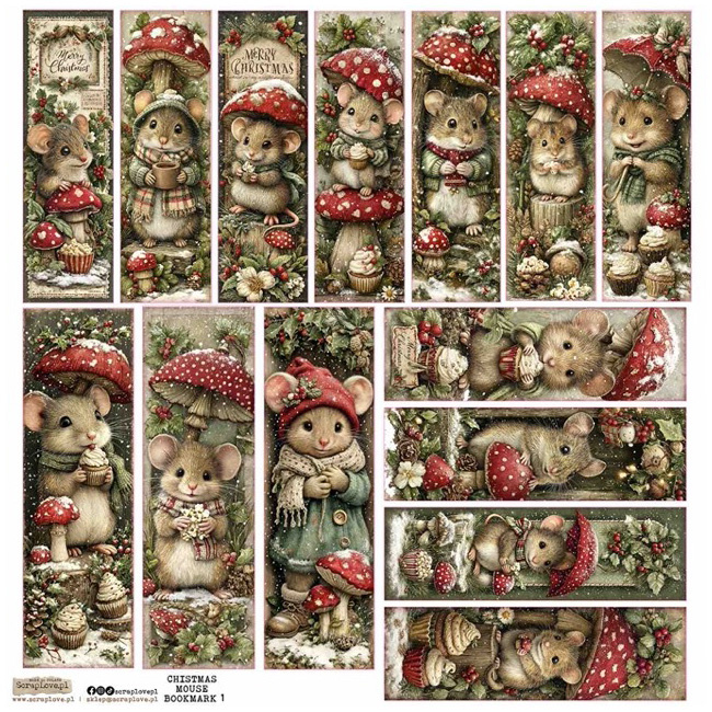 Naklejki papierowe - ScrapLove - Christmas Mouse Bookmark 1 - Świąteczne mysie zakładki