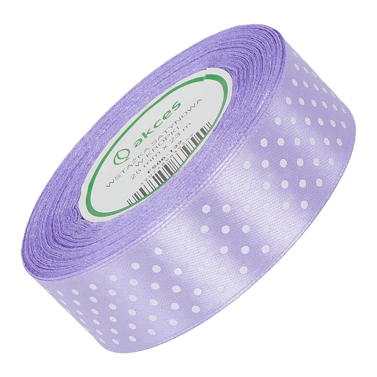 Wstążka satynowa w kropki 25 mm - liliowa 123 - 23 m - dekoracyjna tasiemka