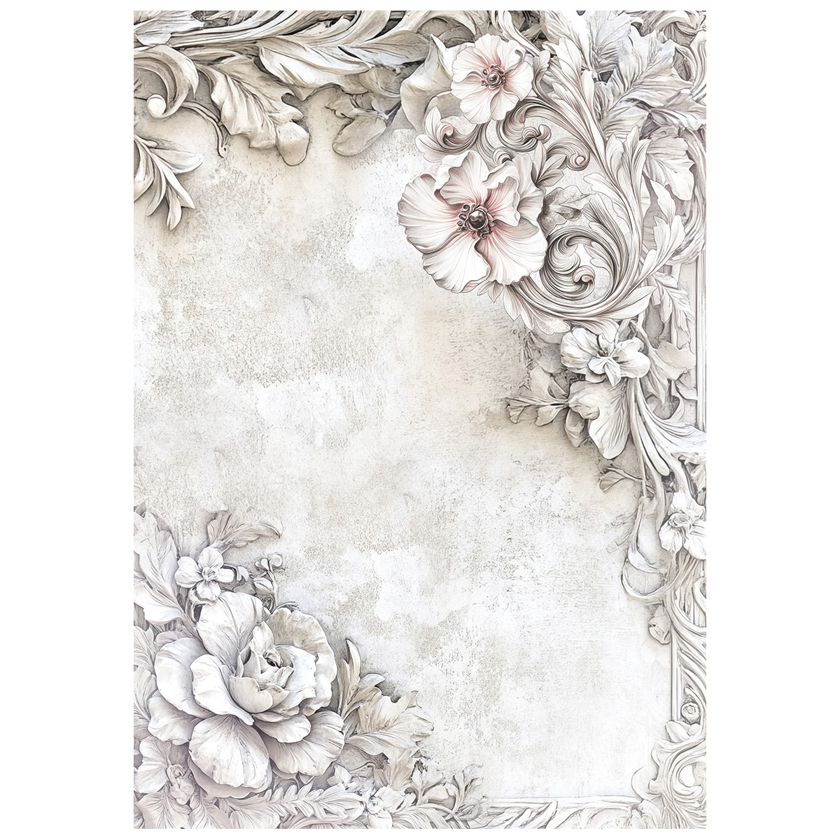 Papier ryżowy do decoupage A4 - Art of Alchemy - W ciszy, białe kwiaty