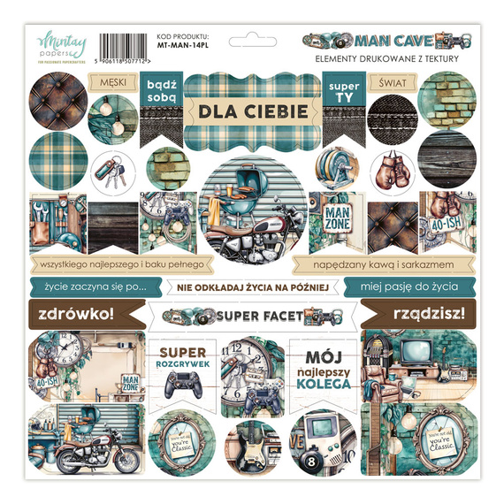 Każdy element został stworzony z dbałością o detale, z zachowaniem wysokich standardów jakości w procesie druku i cięcia - wszystko wykonane lokalnie w naszej pracowni. Zestaw zawiera ozdobne kółka, tagi, napisy i inne dekoracje, doskonale dopasowane stylistycznie do kolekcji Man Cave.